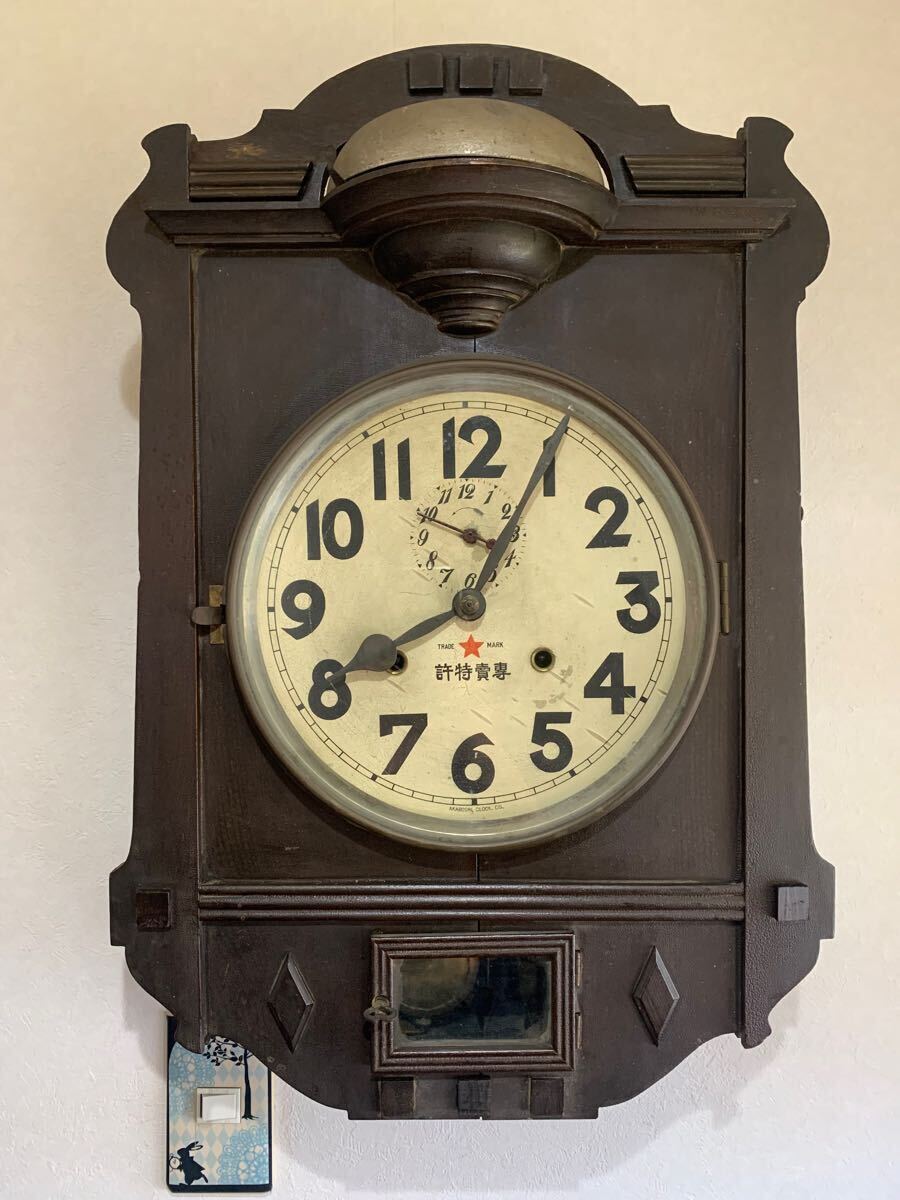 - 希少 赤星 目覚まし機能 掛時計 柱時計 振り子 アンティーク アラーム付き ゴング カンカン時計 ボンボン時計 昭和レトロ ゼンマイ式