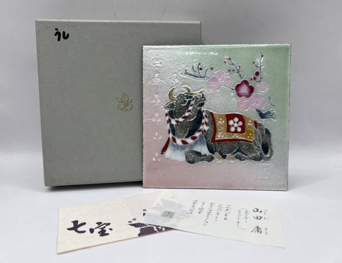 > B) 七宝焼 干支 飾り 丑 うし ウシ 牛 紙箱 動物 山田庸 ※ほかの干支も出品中です♪ D86i