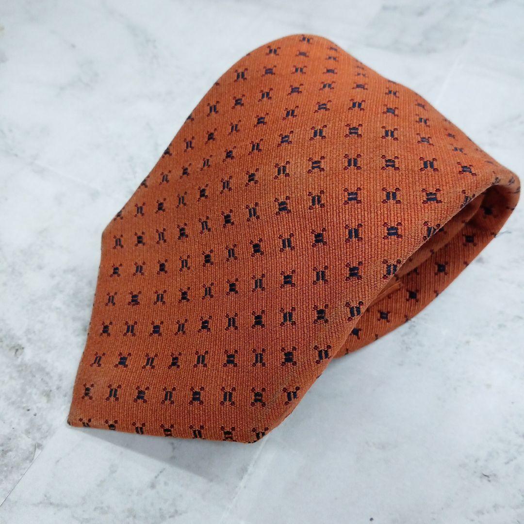 - ビームスエフ BEAMS F ネクタイ 橙 星型のような幾何学 絹【n1931】