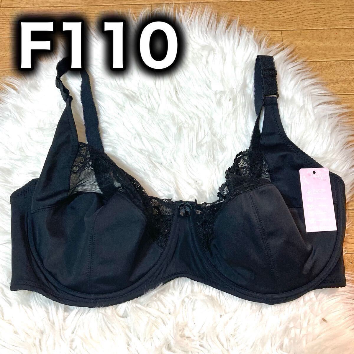 - 大きいサイズ フルカップ ブラジャー ブラック 黒 F110 Fカップ 110F 3段ホック 下着 プラスサイズ ワイヤーブラ レース 高品質 インナー