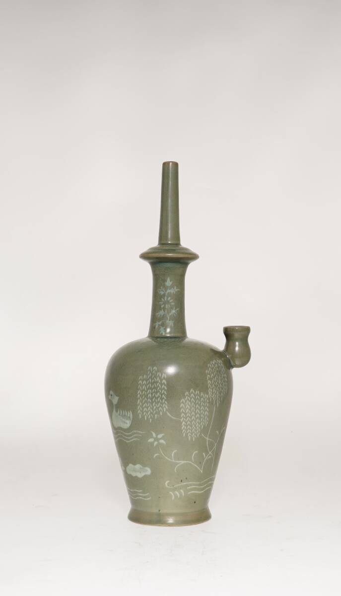 > 「宋時代 古陶磁器 高麗磁器 御貢 青磁 荷塘文 淨壺 急須 酒壺 磁器」置物 飾り物 時代物 古董品 骨董 旧家蔵出し 唐物 中国古玩 古美術品