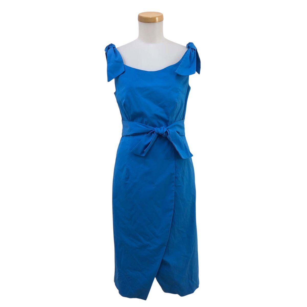- m627-43 USA製 Milly ミリー リボン デザイン ノースリーブ ワンピース ワンピ ドレス ブルー系 青系 レディース 2