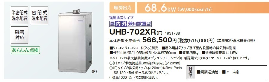 - ◆道東発 引取り希望◆新品◆コロナ◆大型温水ボイラー(業務用)◆UHB-702XR(F)◆リモコン付き◆