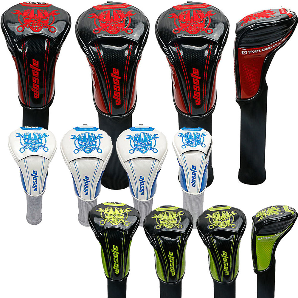 - ゴルフヘッドカバー ドライバー/ウッド FW /ユーティリティ UT用 防水仕様 変換ダグ付き 4点セット ロボットスカル