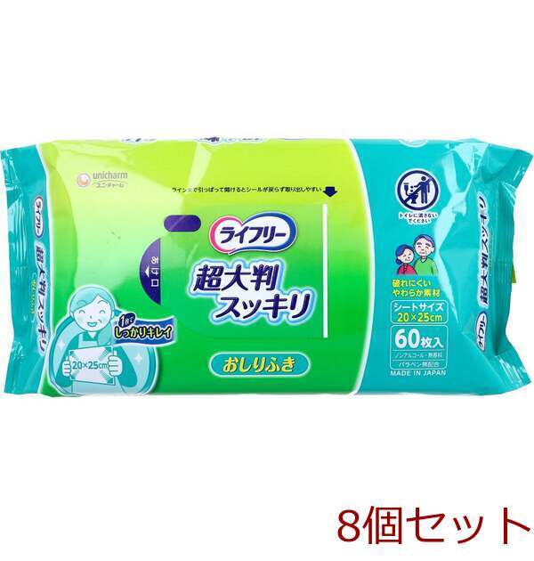- ライフリー らくらくおしりふき超大判 60枚入 8セット
