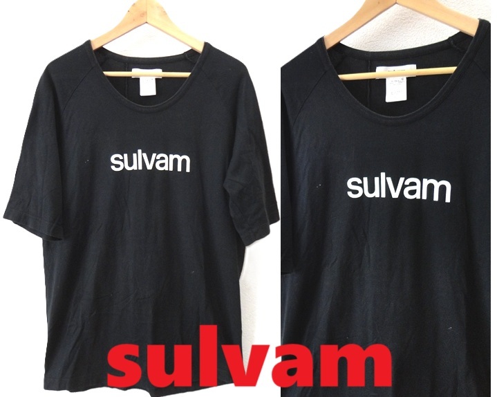 - 日本製/sulvam:サルバム/ロゴ プリント入り ラグランスリーブ Tシャツ/カットソー/黒/Ssize/ヨウジヤマモト 元パタンナー 藤田哲平