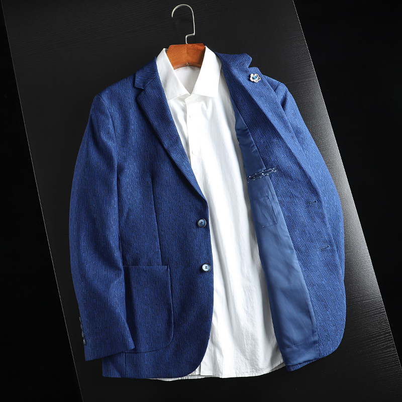 > 人気XL紺色 新品 テンセル混 防シワ ラードジャケット メンズ 軽量 通気 立体裁断 薄めの肩パッド 薄手 細身 春夏 ビジネス ブレザー