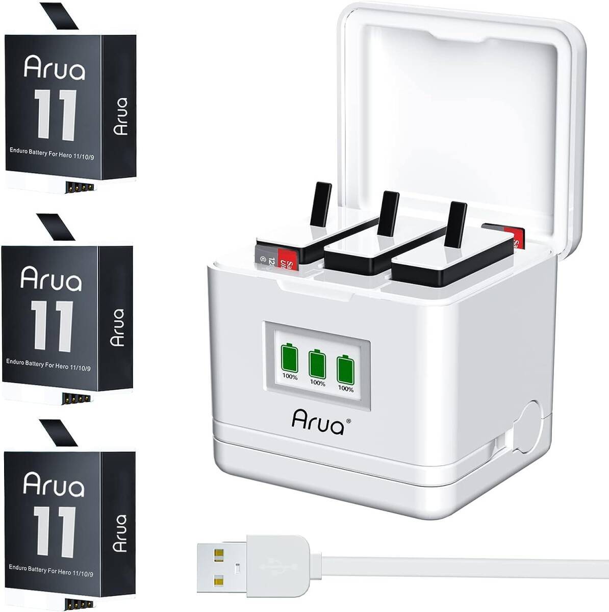 - Arua 低温環境下対応 Gopro Hero11/10/9 バッテリー Enduro 3個入り 充電量表示 充電器ケーブル一体型