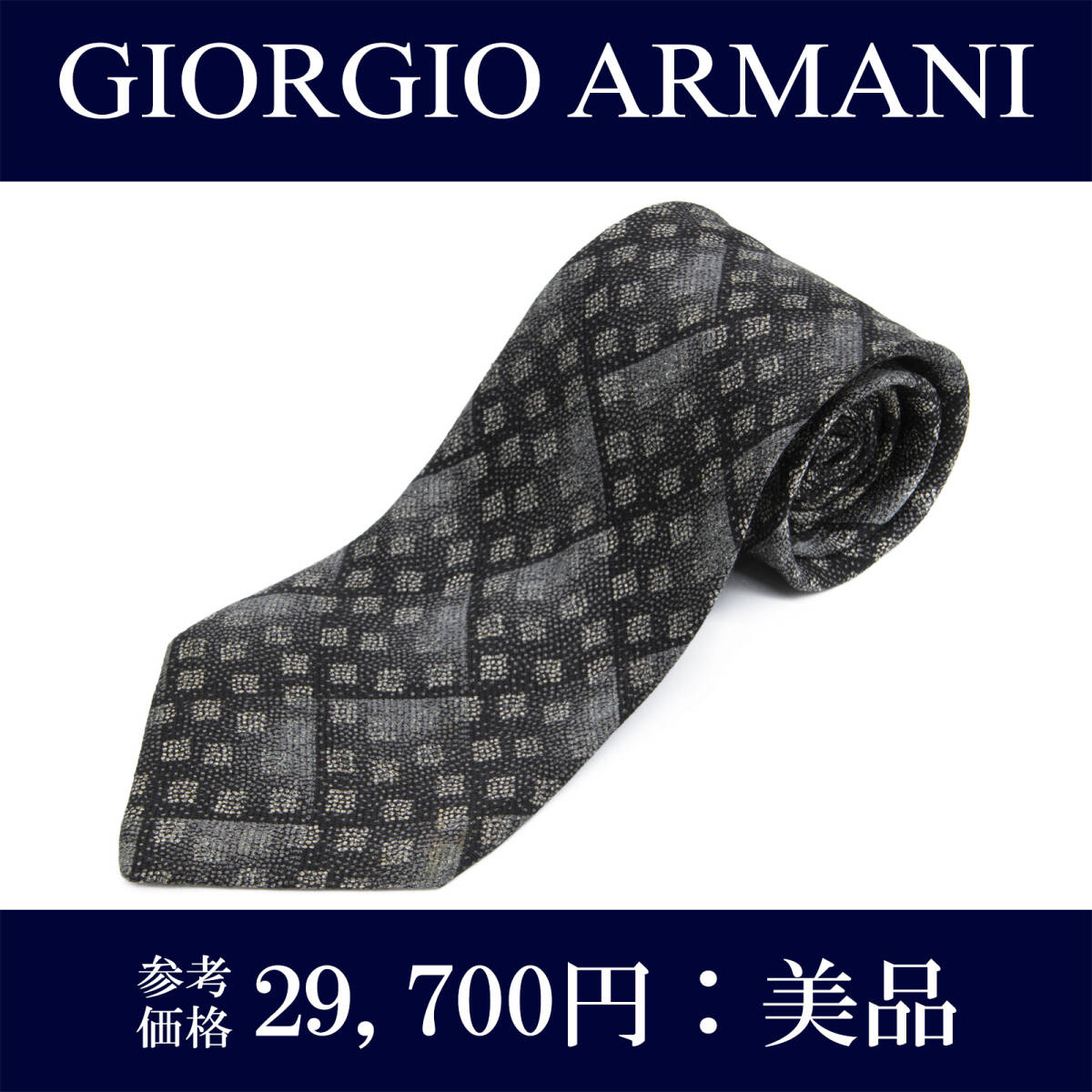 - 送料無料 ジョルジオアルマーニ ネクタイ シルク 黒 ブラック グレー ビジネス カジュアル 四角 スクエア ブランド イタリア製 綺麗 N997