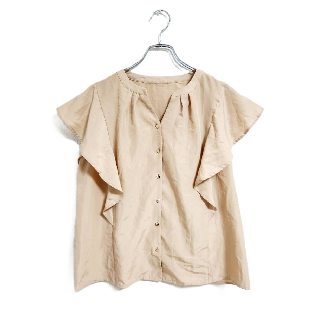 - グローブ ブラウス ベージュ L フレアスリーブ フロントボタン ナチュラル