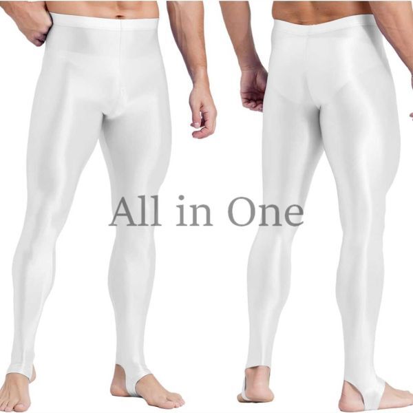 > 177-27-20 光沢 ツヤツヤ アンダーフット ストラップ【ホワイト,Mサイズ】男性 メンズ スポーツ レギンス コスプレ ジム ワークパンツ .2
