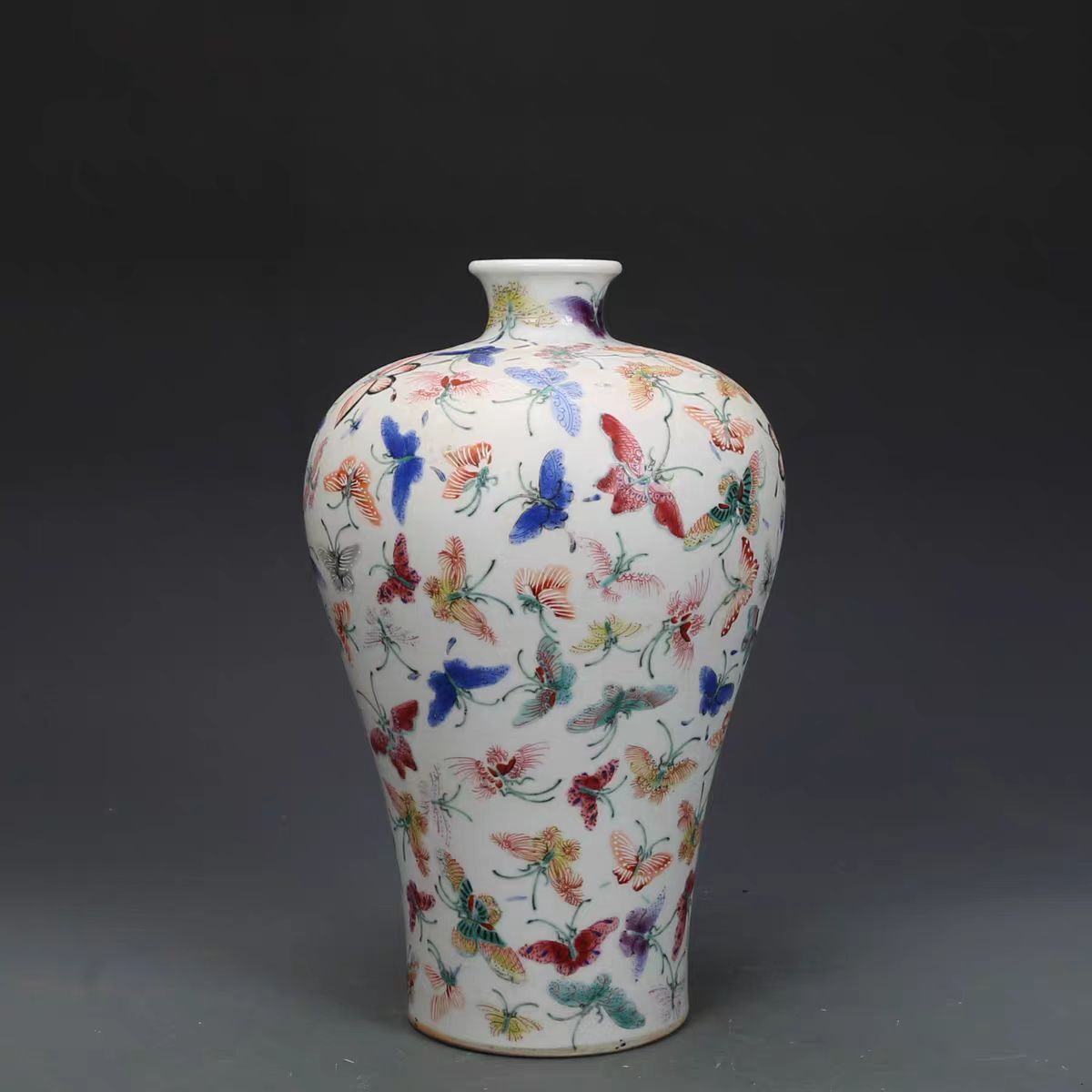 - 清時代 光緒年製款 古陶磁器 粉彩 蝴蝶紋 梅瓶 花瓶 賞瓶 磁器 置物 古擺件 時代物 古董品 骨董 旧家蔵出し 唐物 中国古玩 古美術品