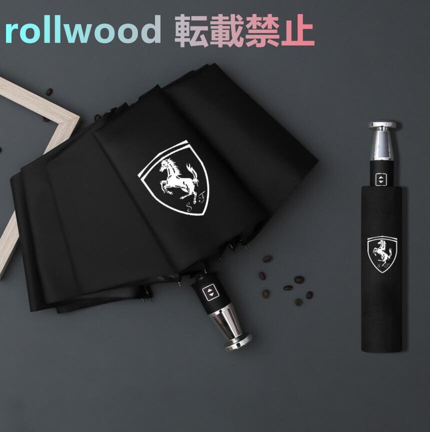 - 新作 フェラーリ ロゴ入り 晴雨兼用 折りたたみ特大強化厚傘 全自動リバースカー 高級アンブレ ラ 車載用 コンパクト 日傘 雨傘