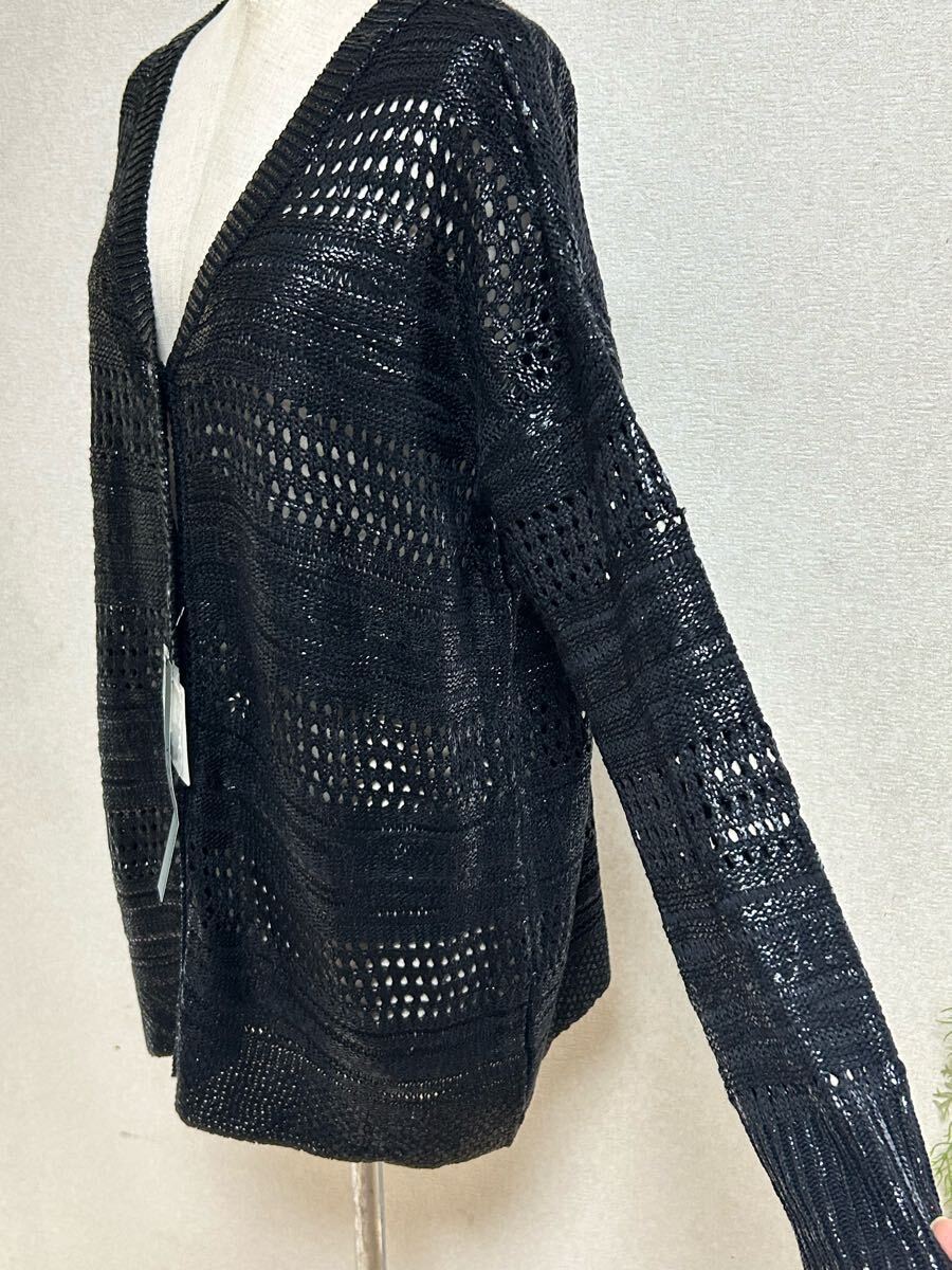 - 5985円・新品【 YEVS★イーブス】コーティング加工ロングカーディガン・艶感・透かし編み・ブラック
