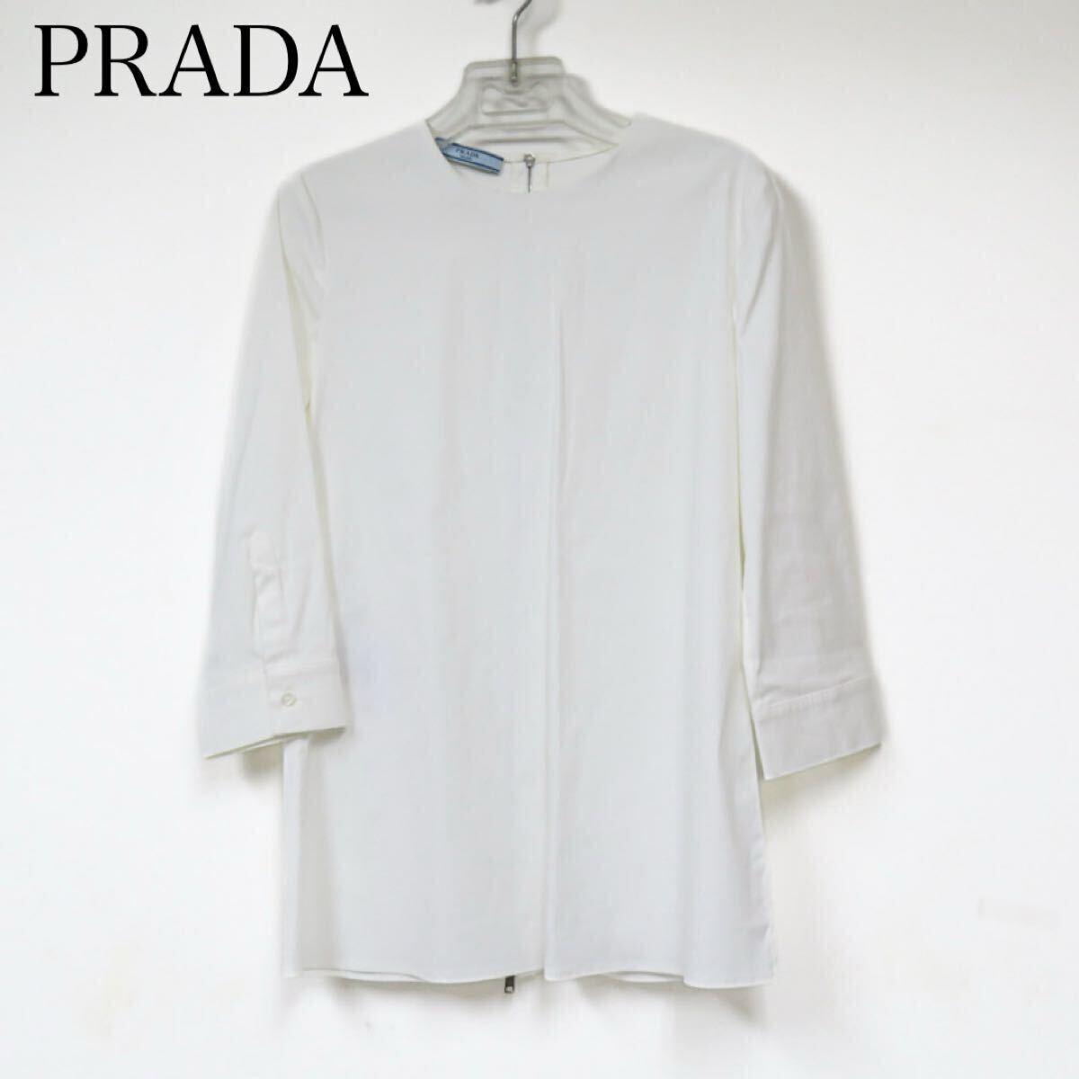 - PRADA プラダ ホワイト系 カラー ブラウス ラウンドネック 長袖 38サイズ 七分袖 トップス 白系 ファスナー