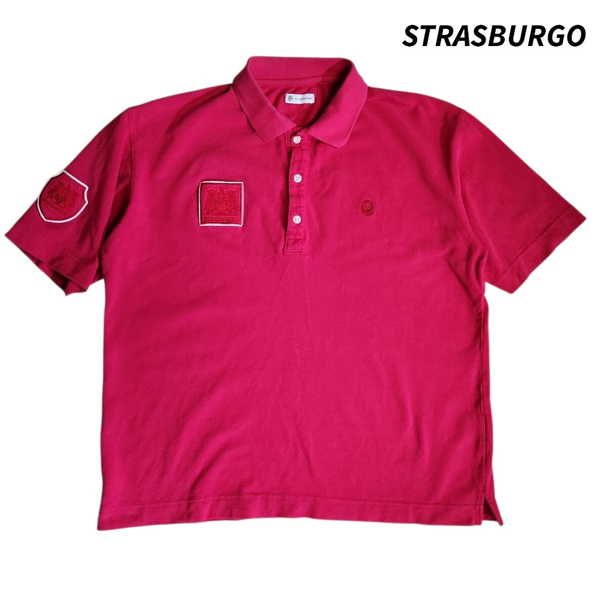 - STRASBURGO 刺繍&ワッペン 半袖ポロシャツ 赤ピンク Lサイズ相当 ストラスブルゴ 84541