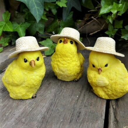 - ひよこの置物 麦わら帽子とひよこ6品セット M3818-00 鳥 とり オーナメント オブジェ 庭 ガーデン 雑貨 インテリア