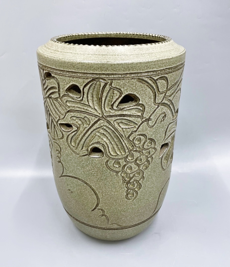 - 陶器 傘立て かさたて アンブレラスタンド ぶどう柄 葡萄紋 インテリア 柄物 傘たて