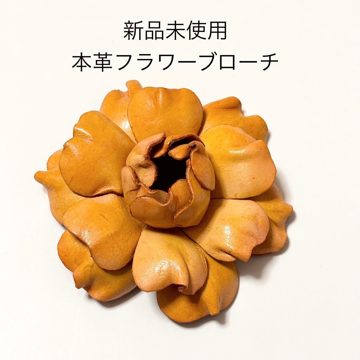 > 新品未使用 本革フラワーブローチコサージュ アンティークイエロー ローズ 黄 バラ 成人式 入学式 卒業式 和装 お花 浴衣 帯留 帯飾り