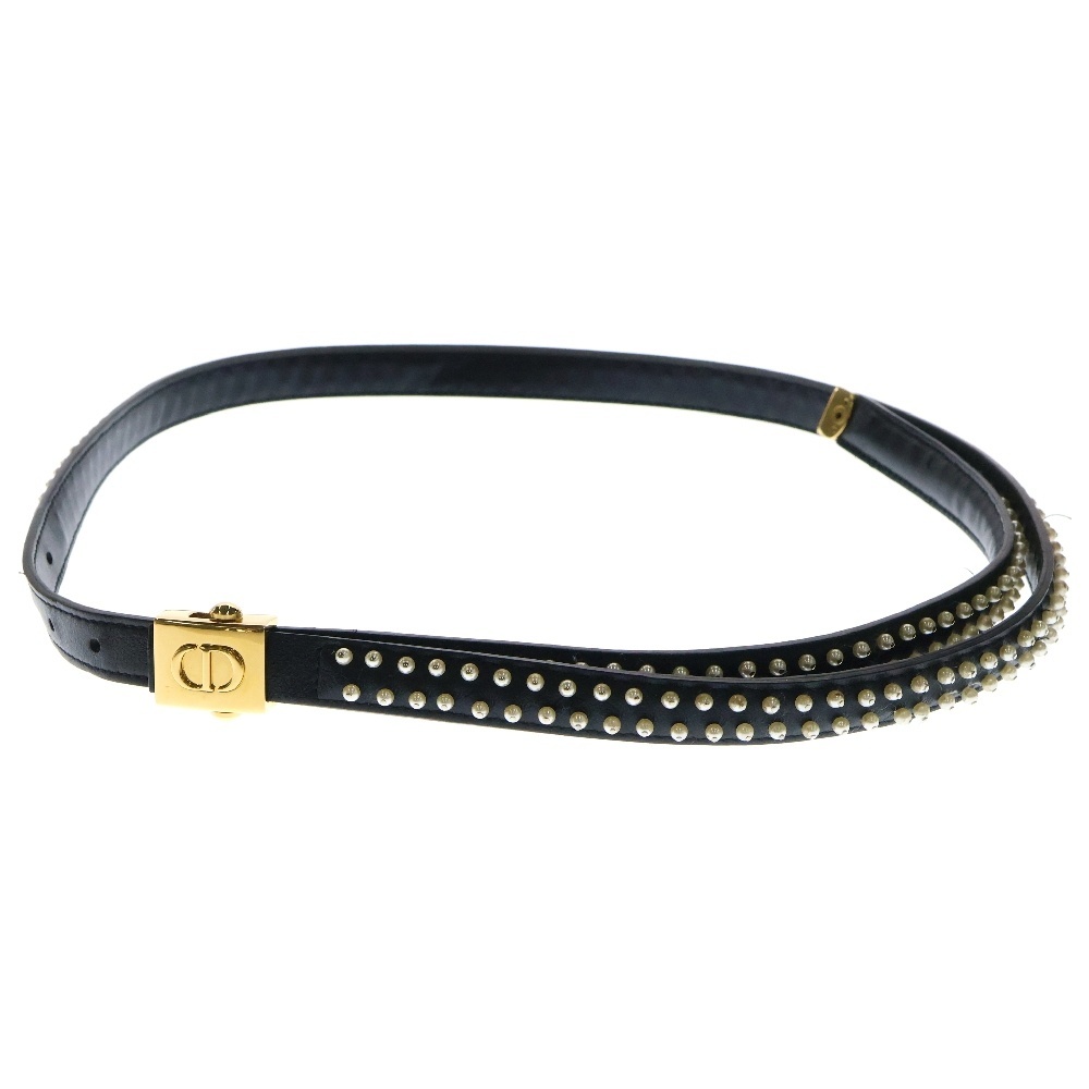 - Christian Dior クリスチャンディオール ロゴ ベルト ブラック フェイクパール レザー ゴールド金具