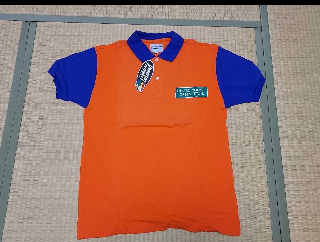 - ベネトン 新品ポロシャツ サイズM 紺/オレンジ