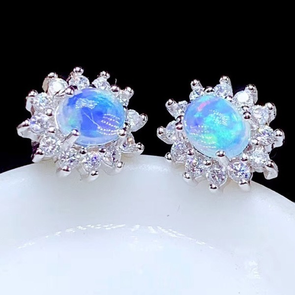 ナチュラルオパールピアス、925シルバー、優雅な高級ファッション、エレガントなデザイン