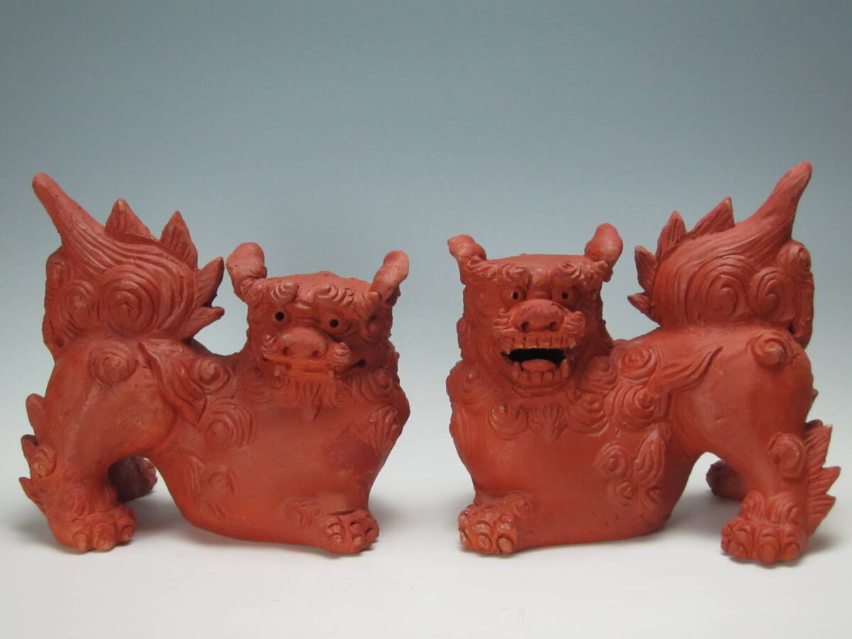 - 人間国宝金城次郎一門 金城敏徳 作 素焼きハイシーサー(大)1対