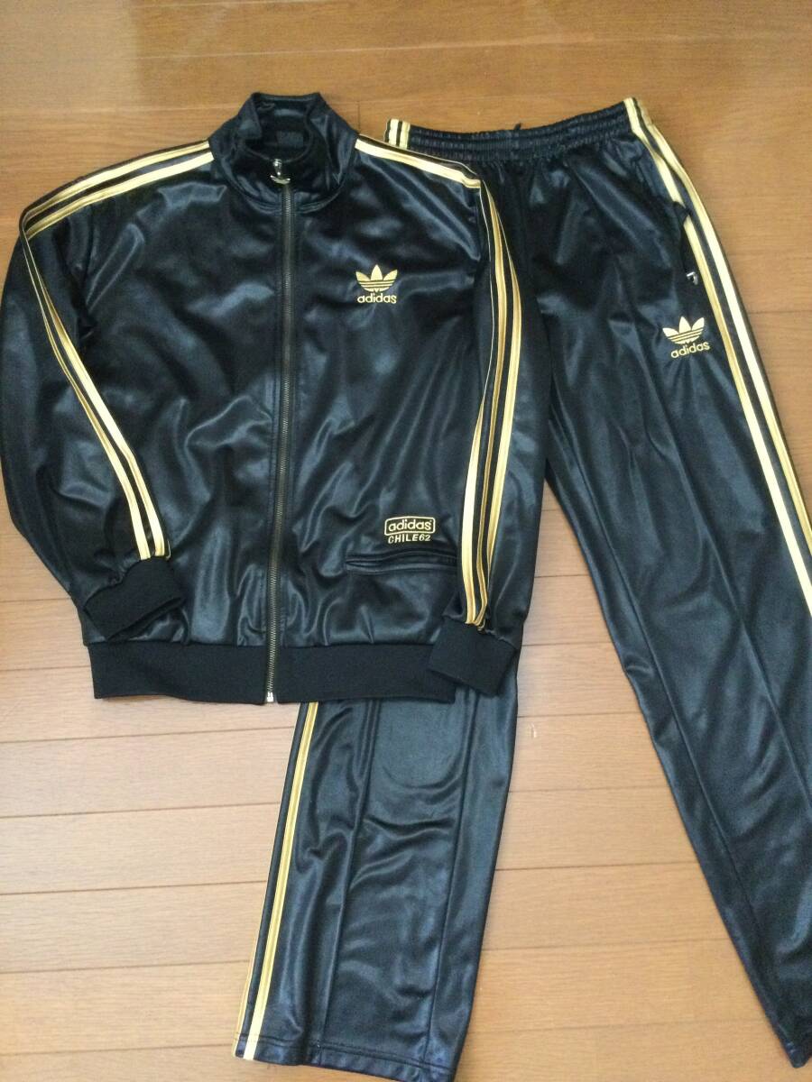 > オールドアディダス セットアップ 黒金 L adidas vintage 万国期タグ トレフォイル ジッパー 刺繍