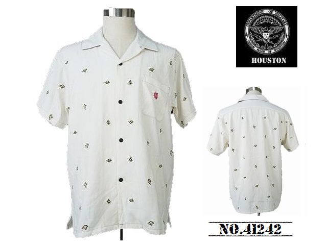 > 【送料無料 43%OFF】HOUSTON ヒューストン 総柄刺繍 スーベニアシャツ 「VIETNAM TIGER」柄 NO.41242 OFF WHITE_Lサイズ