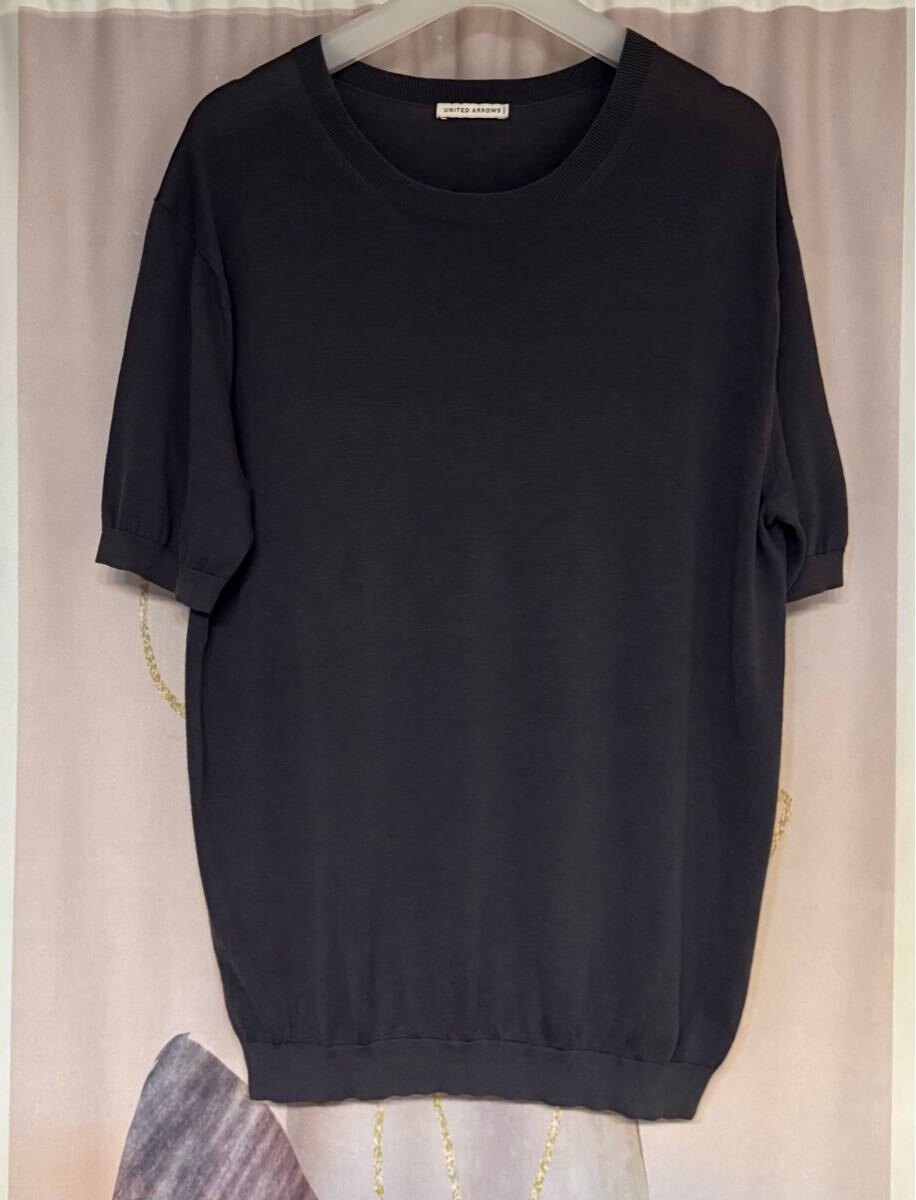 - ユナイテッドアローズ コットンシルク ニットTシャツ チャコールグレー