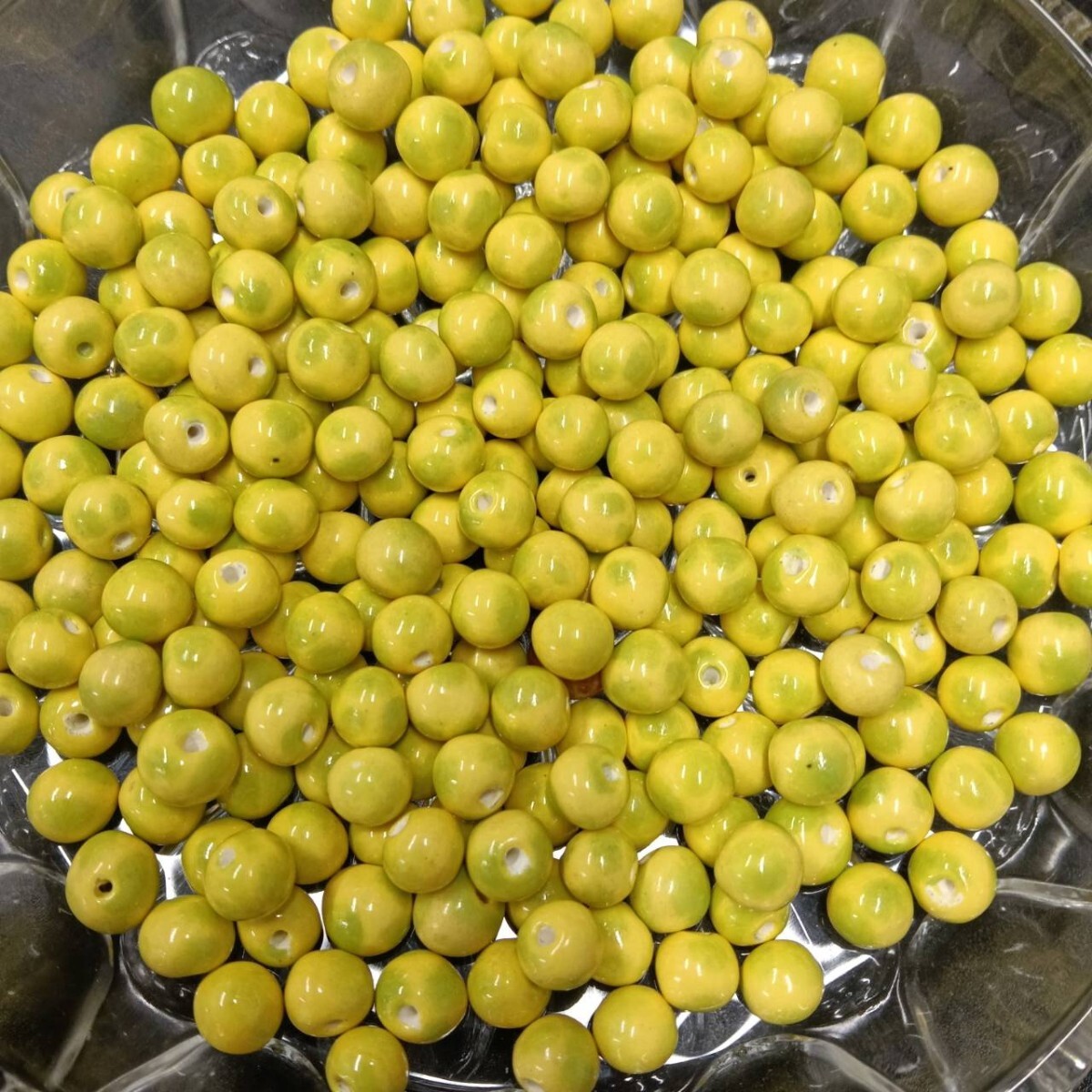 - ☆未使用 大量 片穴 チェコ ガラスビーズ 169g 8mm イエロー 大粒 ヴィンテージ ハンドメイド 手芸 パーツ アクセサリー ネックレス S-151
