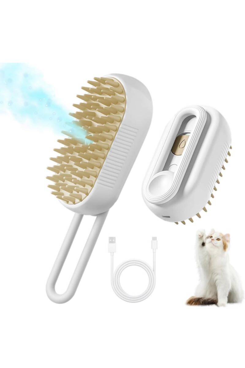 - 2024新 ペット ブラシ】 蒸し猫 ブラシ ペット用ブラシブラシ 犬 抜け毛取り 噴霧式 360°回転 USB(ホワイト)