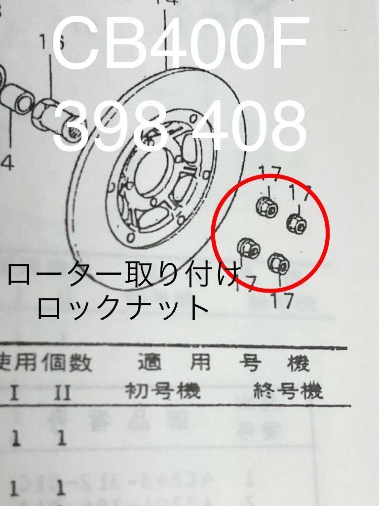 > CB400F フロントブレーキローター 取り付けナット フランジ付きロックナット CB400four 398 408 @