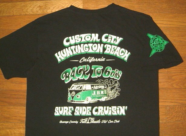 背中に大きくメインモチーフの【カスタムカー(ワーゲンバス)】が、