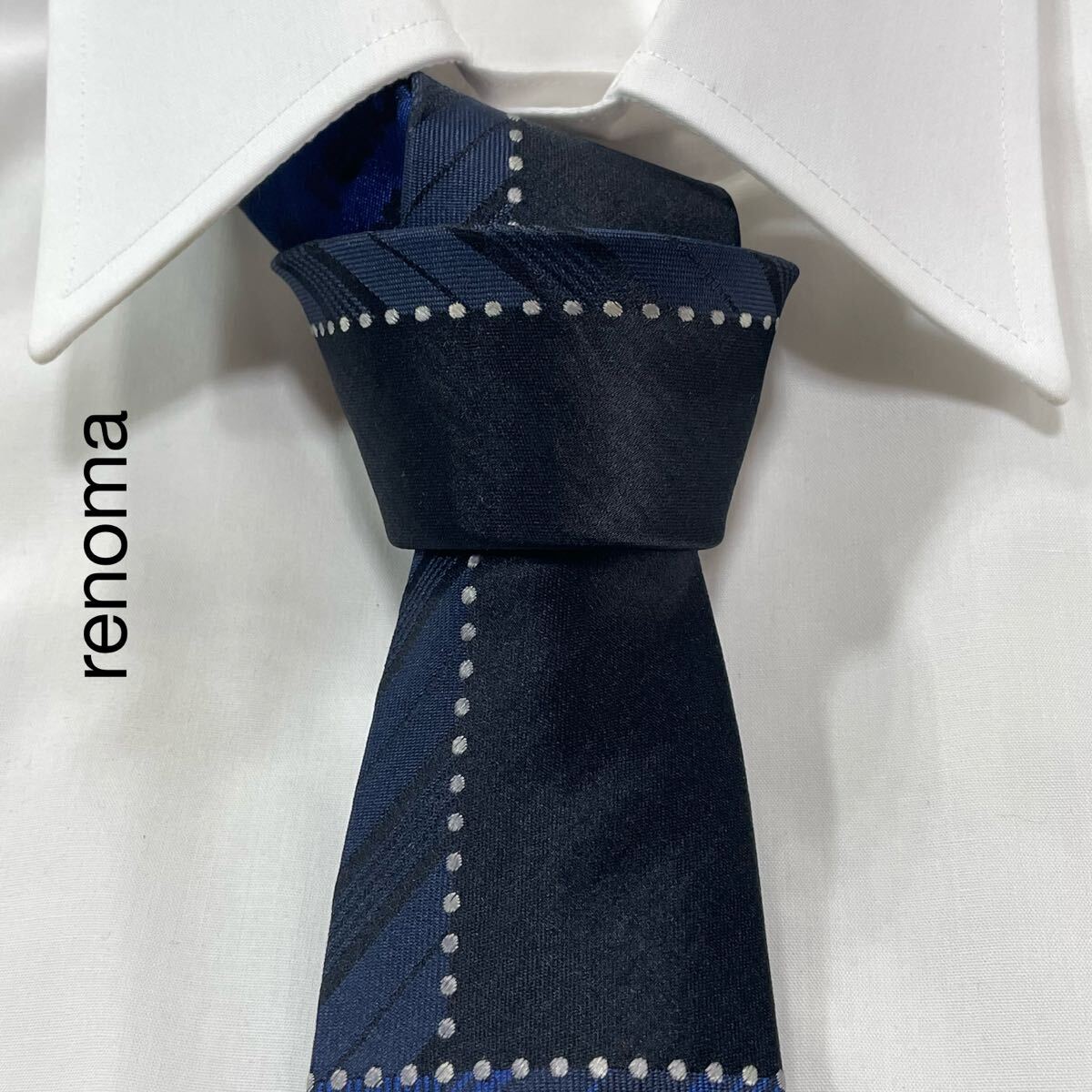- renoma レノマ 切替 ロゴ ジャガード シルク ネクタイ ブルー ブラック グレー TG2376