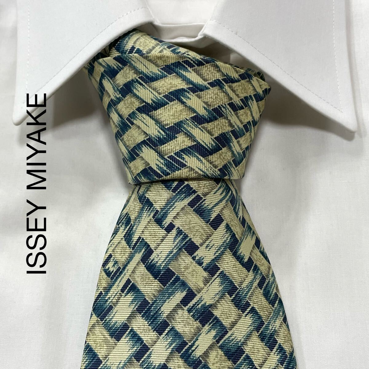 - ISSEY MIYAKE イッセイミヤケ 交差柄 シルク ネクタイ 日本製 クリームグリーン ブルー TG2447
