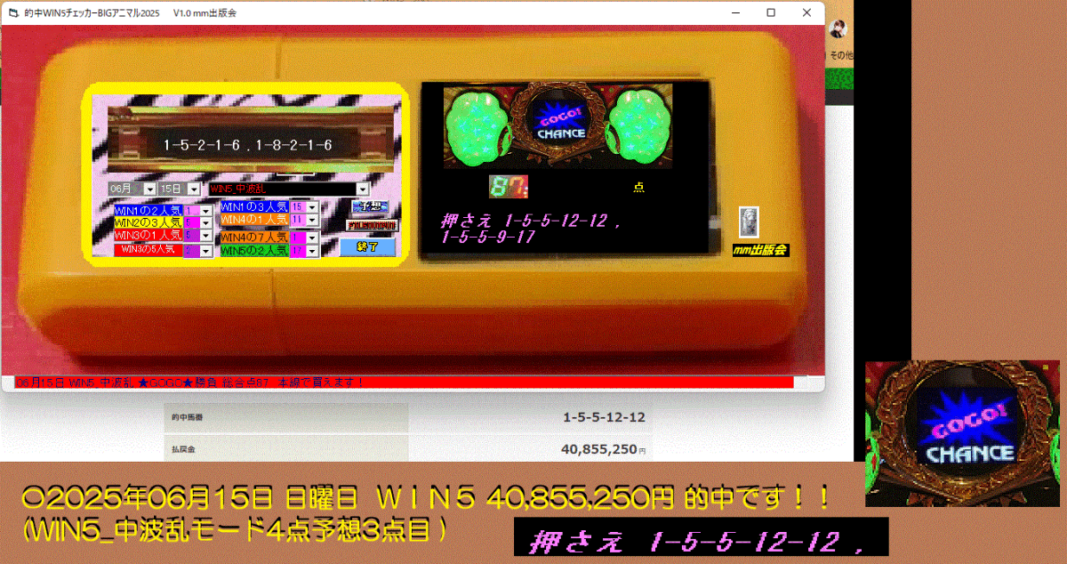 - 新作 [的中WIN5チェッカーBIGアニマル2025] 競馬予想ソフト をご案内申し上げます。 40,855,250円 3億 的中です!