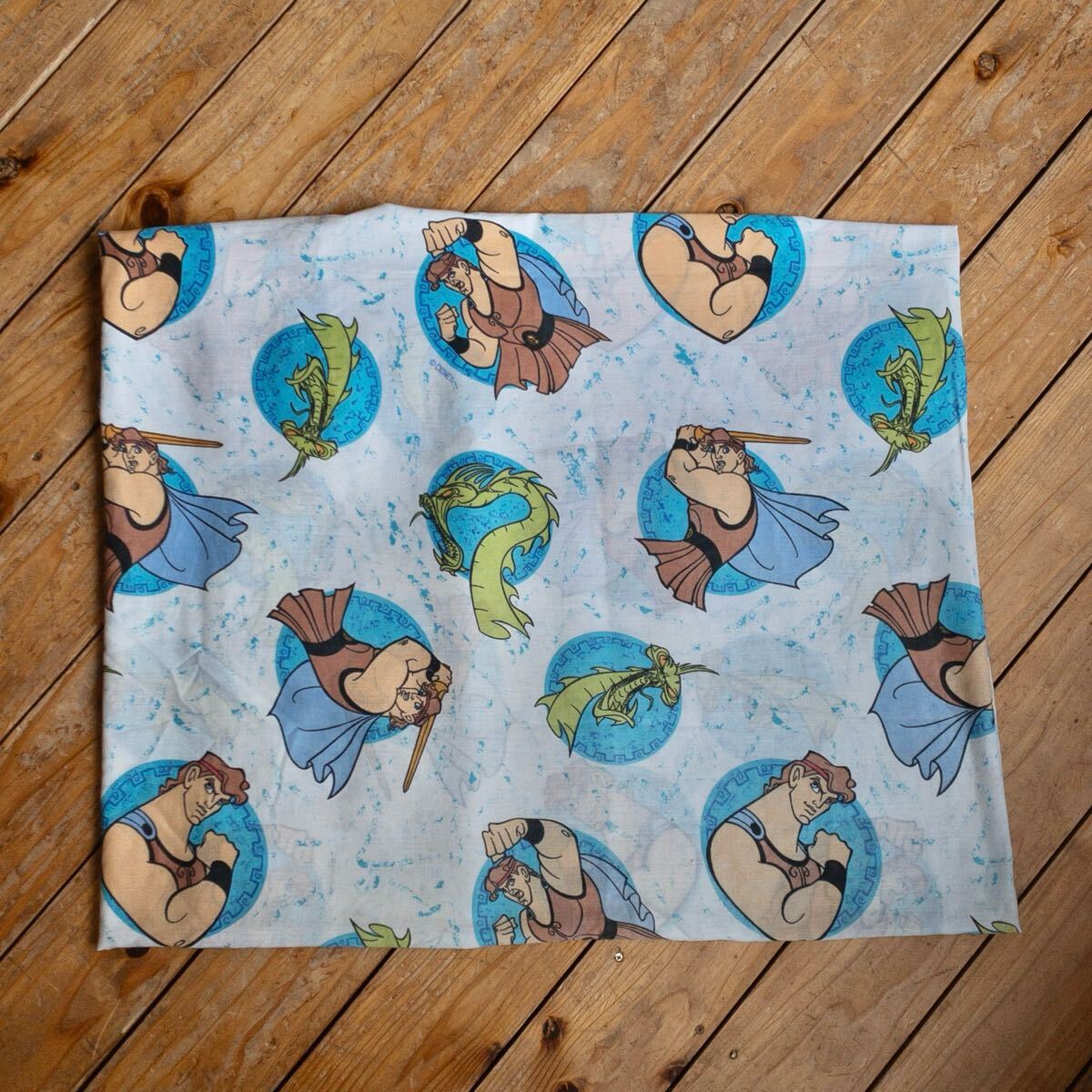 - USAヴィンテージ ベッドシーツ ディズニー ヘラクレス リメイク生地 素材 総柄 Disney ボックスシーツ アメリカ仕入 B2852