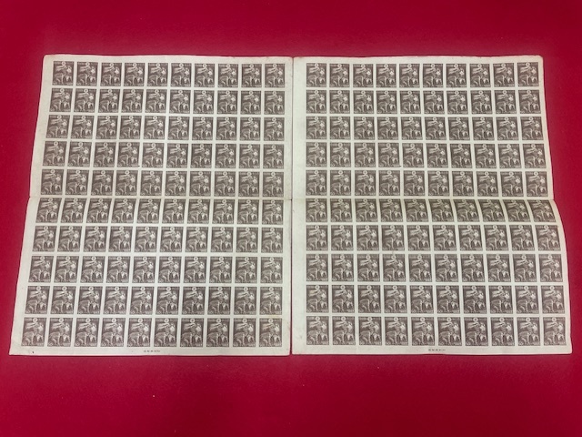 - 現状品 保存品 採炭夫50銭(印刷局製造) 2シート(50銭×100枚)未使用