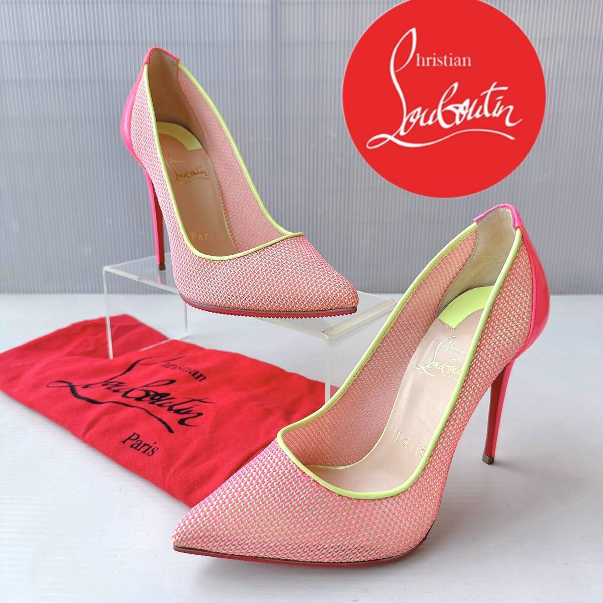 > Christian Louboutin クリスチャンルブタン 編み込み ポインテッドトゥハ イヒール パンプス サンダル 極美品 36.5 靴 シューズ レーディス