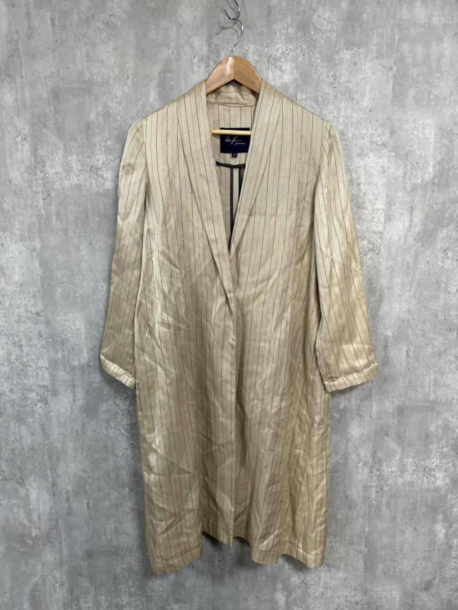 > la.f... ラエフ ロートレアモン ストライプ ロング テーラード ジャケット sizeS/グレージュ ■◇◎ レディース