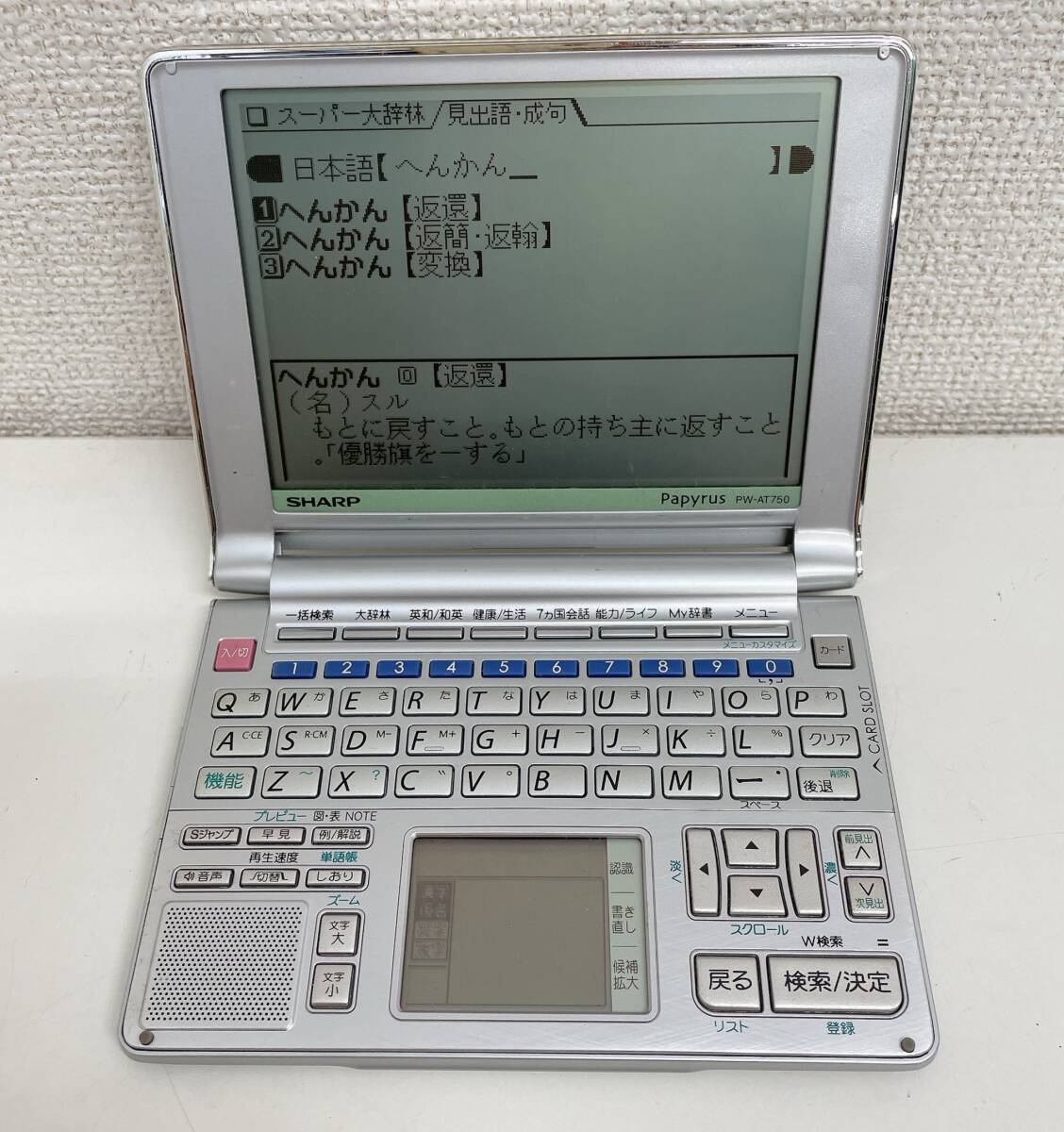 - 【SHARP シャープ Papyrus PW-AT750 電子辞書】通電OK/シルバー/A76-249