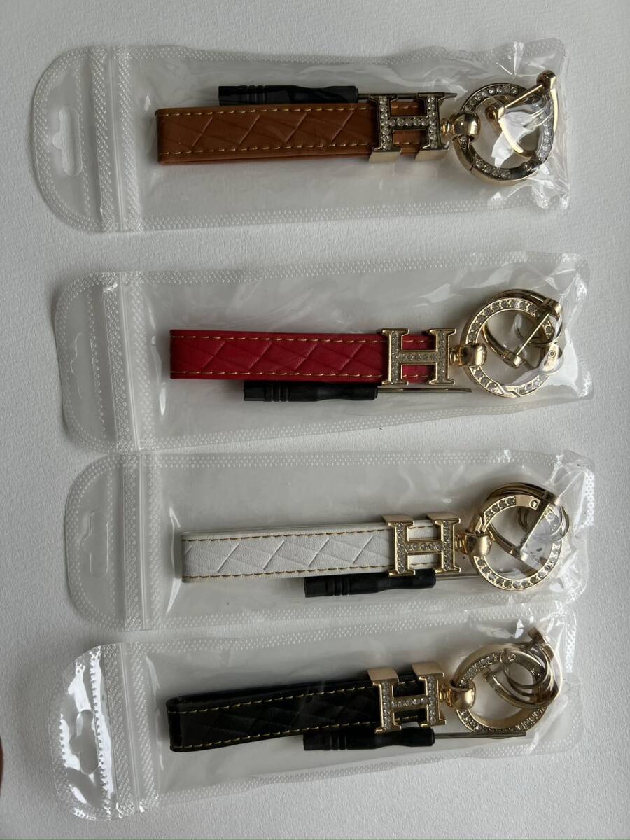- キーホルダー レザーキーリング キーチェーン 本革Hモチーフ 3本売