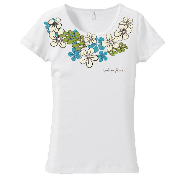 > (M)ホワイト【tf057】*ハイビスカスリアルレイ風*メール便発送Tシャツ半袖送料無料ネックレスハワイダンスレディース南国カジュアルハウラ