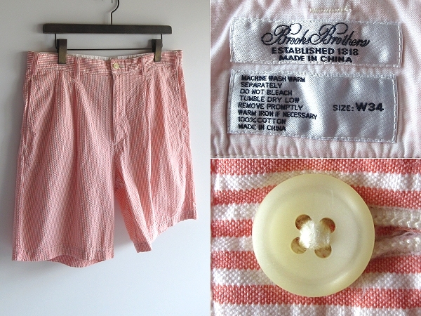 - 希少 90sビンテージ Brooks Brothers ブルックスブラザーズ シアサッカー ストライプ ショートパンツ タック ショーツ W34 サーモンピンク