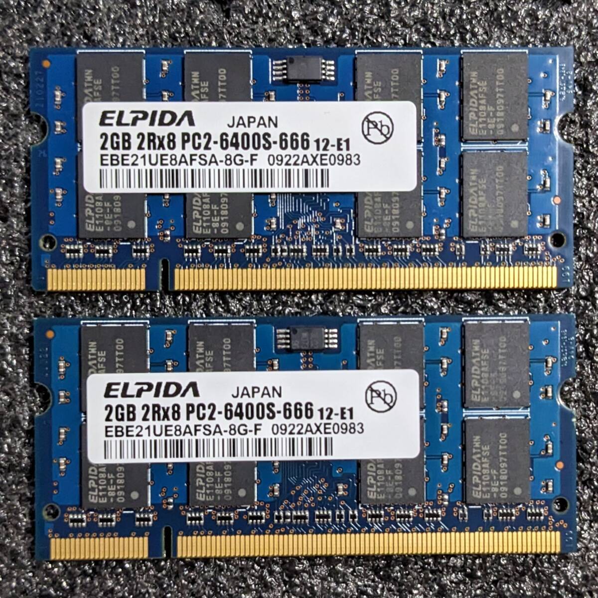 - 【中古】DDR2 SODIMM 4GB(2GB2枚組) ELPIDA EBE21UE8AFSA-8G-F [DDR2-800 PC2-6400]