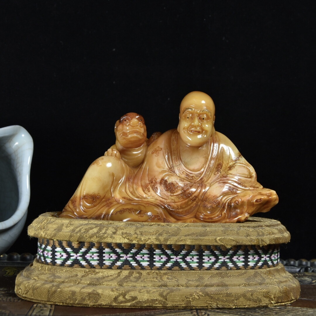 > 「典藏珍品 寿山石 田黄石 清朝時期 尚均製 羅漢像 人物故事文 印鑑 文案置物」飾り物 古董品 骨董 旧家藏出 唐物 中国古玩 古美術品