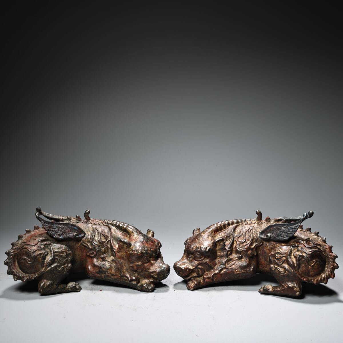 - 蔵友旧蔵出 銅製 泥金 貔貅一對 希少珍品 貴重品 置物 古賞物 中国古玩 中国古美術品
