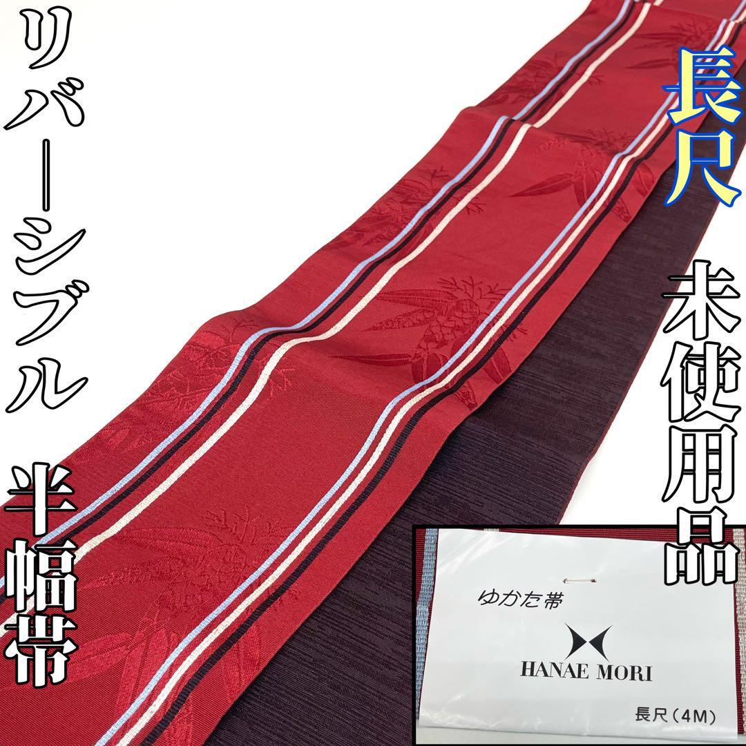 - 【着物と帯 時流】O25760◆半幅帯◆ハナエモリ 長尺 リバーシブル 未使用品