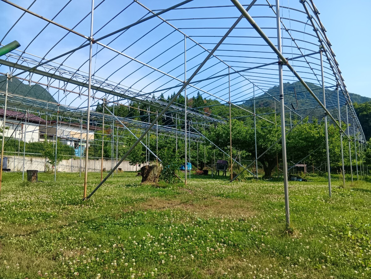 - 引取限定 格安中古大型雨避けハウス 3連棟 合計間口22m 奥行き38m アーチΦ25 直管Φ25 骨組みΦ42 サクランボ 葡萄 果樹 農園向け
